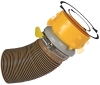 Revolution swivel Lug fitting is designed with easy-grip wings for quick connect and disconnect. Twist-it clamp secures hose for an odor tight connection. Patent pending.